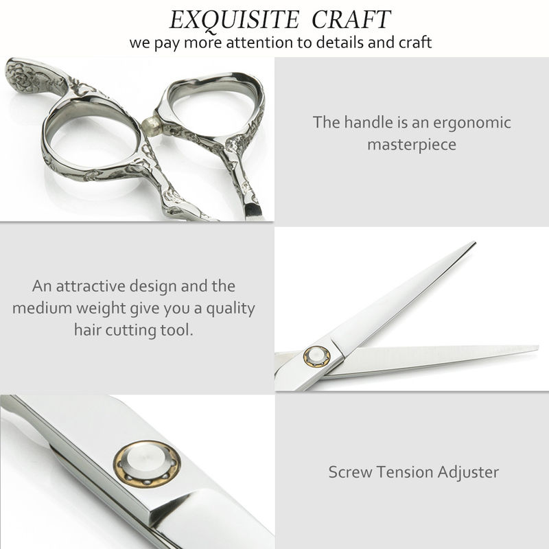 훌륭하게 만들어, 이들은 매끄러운 절단 활동을 위한 중간 무게 가위입니다. 당신의 마음에 드는 절단 기술 전부를 실행합니다. 그것에는 일본 440-C 강철로 만들고 예리한 가장자리가 있습니다. 제품은 그것의 날카로움을 오랫동안 유지할 수 있습니다. 손잡이의 안락은 아주 좋습니다. 인공적인 기계공을 위해 적당합니다. 중대한 가격을 위한 중대한 가위! “파삭파삭”로, 예리한 느낌 강력하게 실행합니다 미용사를 위한 해야 하 가지고 있인 공격적인 절단에 떠받치는.