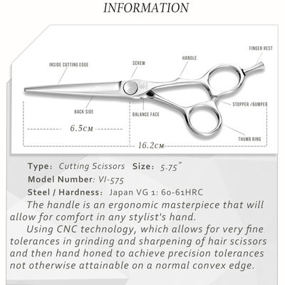 이것은 가볍고 매끄러운 것, 가위의 차감 계산된 6 " 쌍입니다. 그것은 일본인 VG10 강철로 만들어집니다. 블레이드는 매우 날카롭고 작은 뾰족 단부가 당신을 더 적당하게 합니다. 여우 전단, 정밀 베어링 스크류 디자인에 대한 다른 방식과 같이, 이 스크루는 상대적으로 큰 홀 위치를 가지고 있지만, 그러나 초소형 격차의 추구를 목표삼는 CNC 복합 공작 기계의 정확하고 매끄러운 나사 구멍이 더 덜 가위의 날개 쉐이크를 만듭니다. 블레이드의 절단은 가위의 가장 높은 서비스 수명을 달성하도록 극단적으로 안정적입니다.